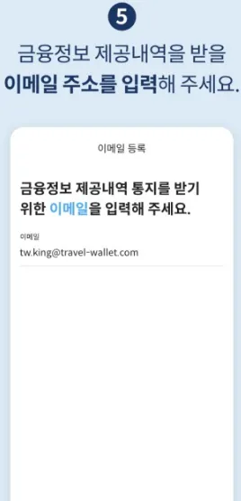 3. 금융정보 제공내역을 받을 이메일 주소를 입력 후 본인명의 계좌 인증을 위해 입금내역을 확인합니다.