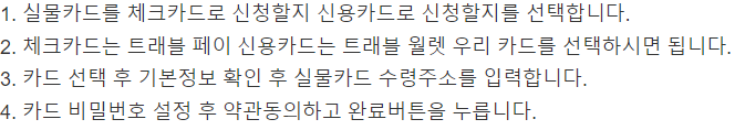 실물카드는 배송기간이 있으니 시간 여유를 두고 미리 신청하시기 바랍니다.