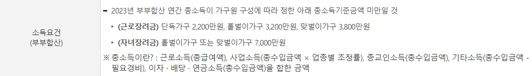 재산 기준은 근로장려금과 같이 재산 합계액(주택, 토지, 건물, 예금 등)이 2억 4000만 원을 넘지 않아야 합니다. 주택공시지가가 하락함으로 작년보다 더 많은 분들이 혜택 받으실 수 있다고 합니다.